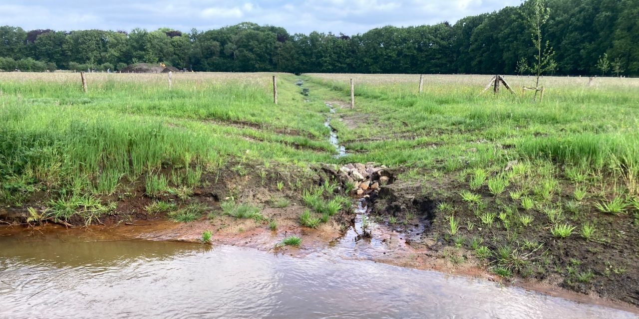 Binnen het projectgebied zullen we deze oeverwallen afgraven en de beek flauwe oevers geven. Zo zorgen we voor extra ruimte voor water in de waterloop en een geleidelijke overgang van de waterloop naar de vallei. Enkele percelen zullen we bovendien beperkt afgraven. Bij hoge afvoeren heeft de beek zo extra buffermogelijkheden. Aan de kant van Brasschaat herstellen we het oorspronkelijke grachtenstelsel en leggen hier brede, ondiepe greppels aan. Zo kan hier sneller water instromen als de beek veel water te verwerken krijgt.