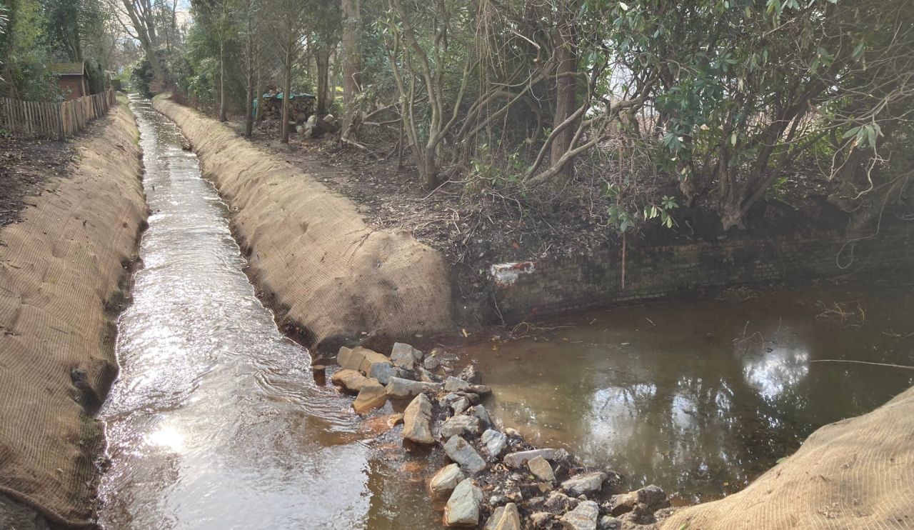 Stroomafwaarts van de Kapelsesteenweg, op de grens tussen Ekeren en Kapellen, werd de waterloop in de jaren ’70 ingebuisd. De provincie maakte gebruik van de afbraak en herbouw van de daar aanwezige supermarkt om de waterloop terug in een open bedding te leggen. Hierdoor kan de waterloop meer water verwerken en bufferen. Bovendien is de beek nu vlot bereikbaar voor onderhoud en bij noodgevallen. De werken aan de waterloop waren eind 2019 afgerond.