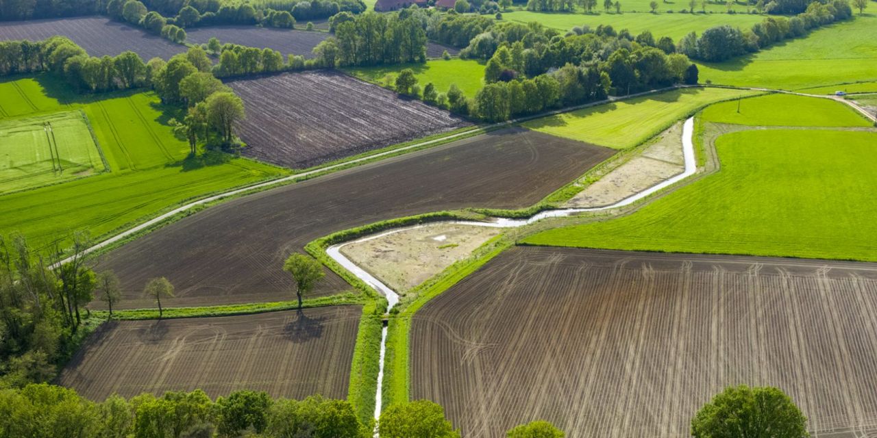 Aan de zijkant van het gebied hebben we in de dijk een aftappunt gemaakt. Lokale landbouwers kunnen hier water afnemen om hun percelen te bevloeiien.