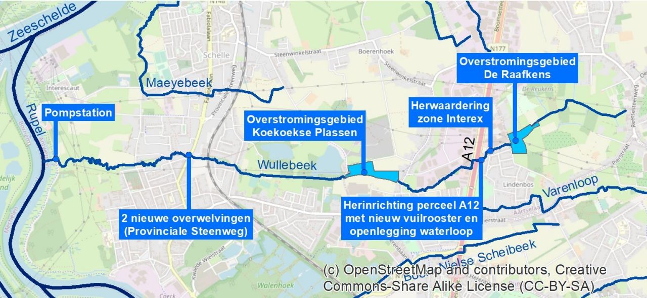 De Wullebeek kruist de Provinciale Steenweg in Schelle. De overwelvingen waren echter in slechte staat en hielden het water tegen. De werking van het pompstation was daardoor minder effectief. Door de overwelvingen te vervangen, kan de dorpskern van Schelle ten volle profiteren van het pompstation.