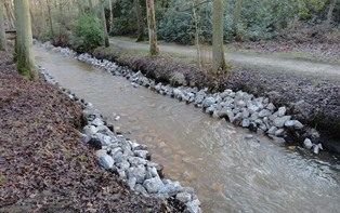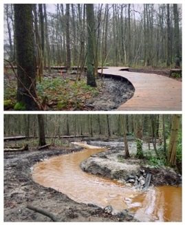In zone 3, aan de speeltuin van het Boothuisje, legden we een nieuw stukje kronkelende beek aan. Zowel in deze nevengeul als voorbij de samenvloeiing met de oorspronkelijke loop legden we in totaal 15 trapjes aan, zodat vissen het hoogteverschil kunnen overbruggen. Het wandelpad ernaast hebben we wat opgeschoven en is deels een avontuurlijk 'vlonderpad' geworden.