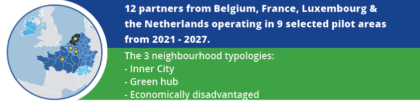 De gebieden bevinden zich in Nederland, België, Frankrijk en Luxemburg en omvatten samen ruim 30.000 vierkante kilometer aan publieke ruimte dat vergroend zal worden. Ook zullen we hier de algemene leefbaarheid vergroten, inclusief het verbeteren van de gezondheid, recreatie en sociale verbondenheid. Tot slot focussen we op het creëren van bewustzijn onder inwoners.