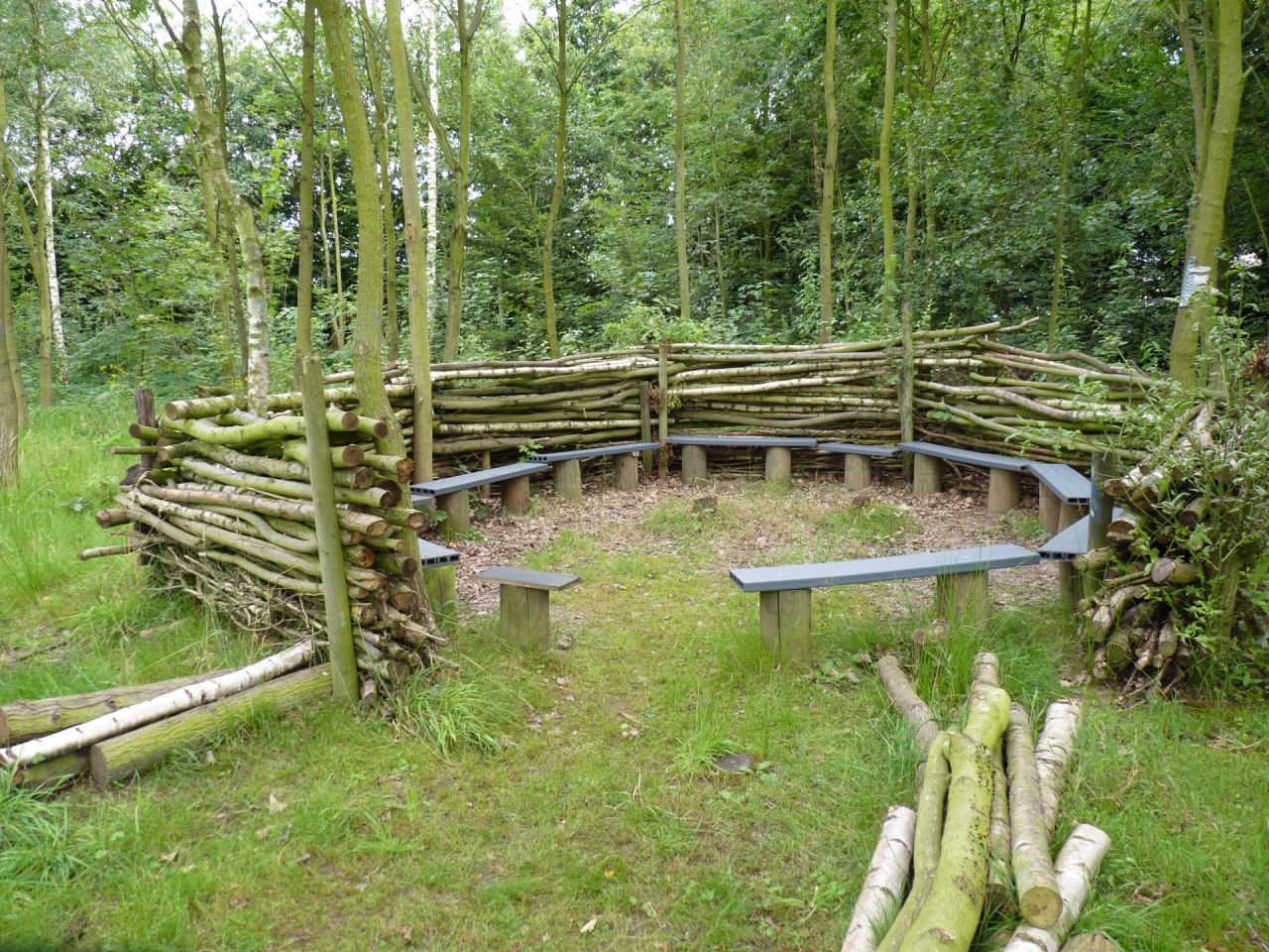 In het Mierennest ben je beschermd tegen extreme weersomstandigheden zoals de hitte of regen. Er kunnen met gemak 20 leerlingen zitten. In onze tuin vind je rondom het Mierennest grasland, een berm en een bosje.