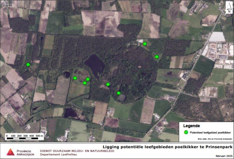 Enkele waterpartijen in de natuurlijke omgeving van het Prinsenpark voldoen aan de eisen van de poelkikker. Het Prinsenpark legt twee poelen aan in het nieuw heidegebied en drie poelen in een voedselarmer bloemrijk grasland. Vlaanderen verplicht om deze soort op te volgen en de aantallen te rapporteren.