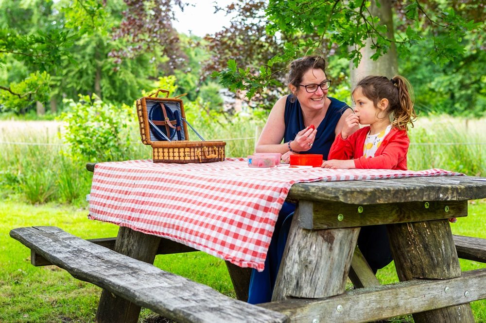 Nestel je met een dekentje en een picknickmand op de groene vlakte van het Vrieselhof ... plaats genoeg voor iedereen. Of eet je liever aan een van de onderrijdbare picknicktafels? Dat kan ook.