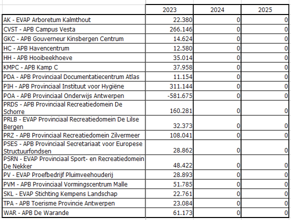De kosten worden voor de rechtspersoon Provincie Antwerpen geraamd op: