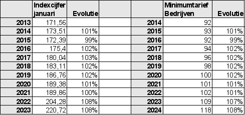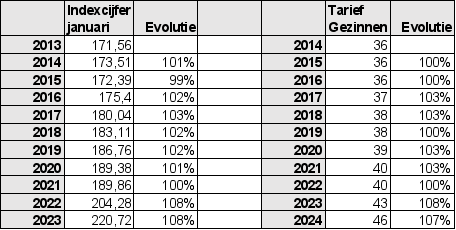 De belastingtarieven worden jaarlijks aangepast aan de index consumptieprijzen van de maand januari van het voorgaande jaar (en dus niet van een volledig jaar). Het indexcijfer van de maand januari van het vorige jaar bepaalt de belastingtarieven van het huidige jaar (afgerond). Er zit dus een jaar verschil tussen de index en het doorrekenen van de index in de belastingtarieven.