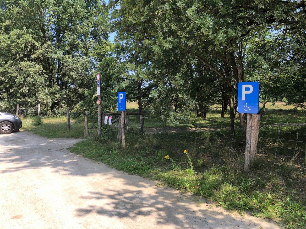 Parkeren: parking aan de Lindekensbaan. Hier zijn 2 parkeerplaatsen voorbehouden voor personen met een beperking.