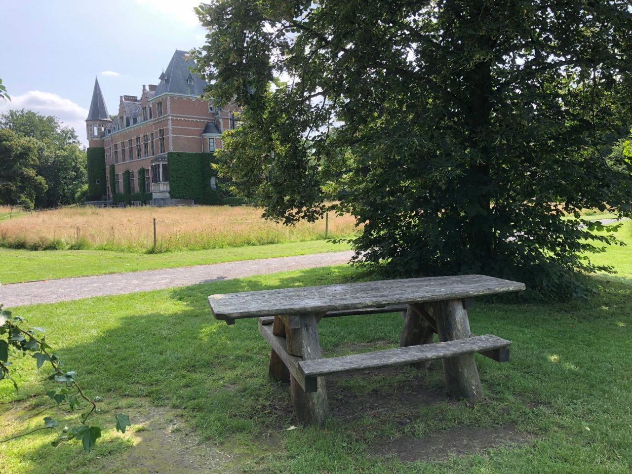 - Onderrijdbare picknicktafels en rustbanken doorheen het hele domein