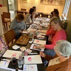 Na jarenlang gulzig proeven van tal van creatieve uitdagingen/opleidingen, opende ze haar eigen tekenatelier te Zele.