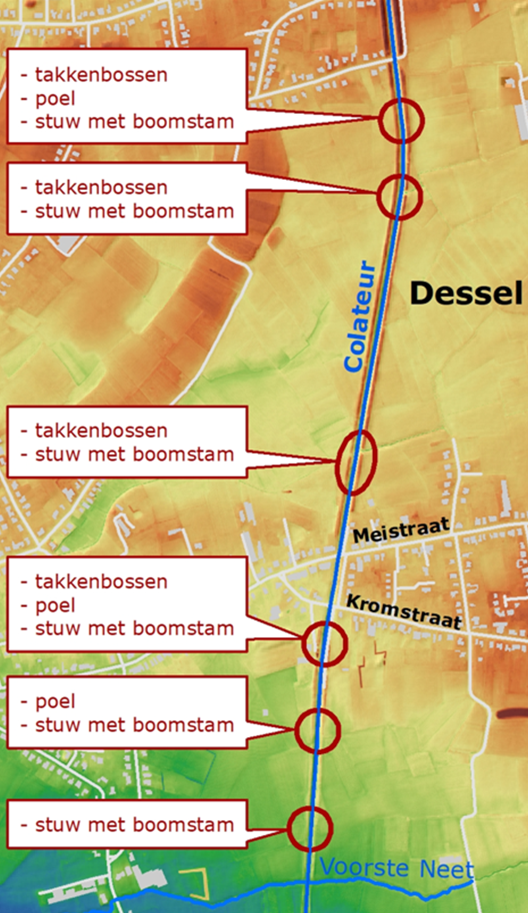 De provincie Antwerpen pakt verdroging Colateur in Dessel aan met natuurlijke drempels en poelen