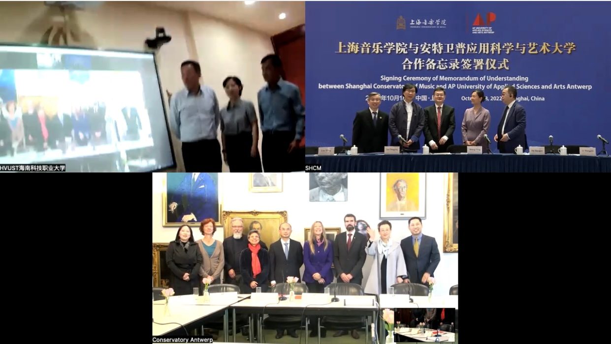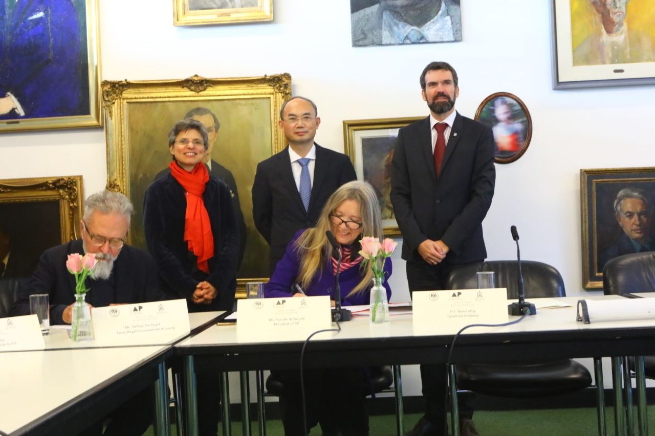 Op dinsdag 18 oktober woonden gouverneur Cathy Berx en de Chinese ambassadeur Cao Zhongming een ondertekeningsplechtigheid van AP Hogeschool Antwerpen bij. De plechtigheid vond plaats in De Singel in aanwezigheid van vertegenwoordigers van de verschillende partners. Via livestream konden Shanghai Conservatory of Music ook de partners in Shanghai en Hainan de plechtigheid volgen. Zo werd er een samenwerkingsovereenkomst getekend tussen het Koninklijk Conservatorium Antwerpen en het gerenommeerde Shanghai Conservatory of Music. Ook voor samenwerking rond het thema gezondheidszorg werd er een overeenkomst afgesloten tussen AP Hogeschool Antwerpen en Hainan Vocational College of Science and Technology.