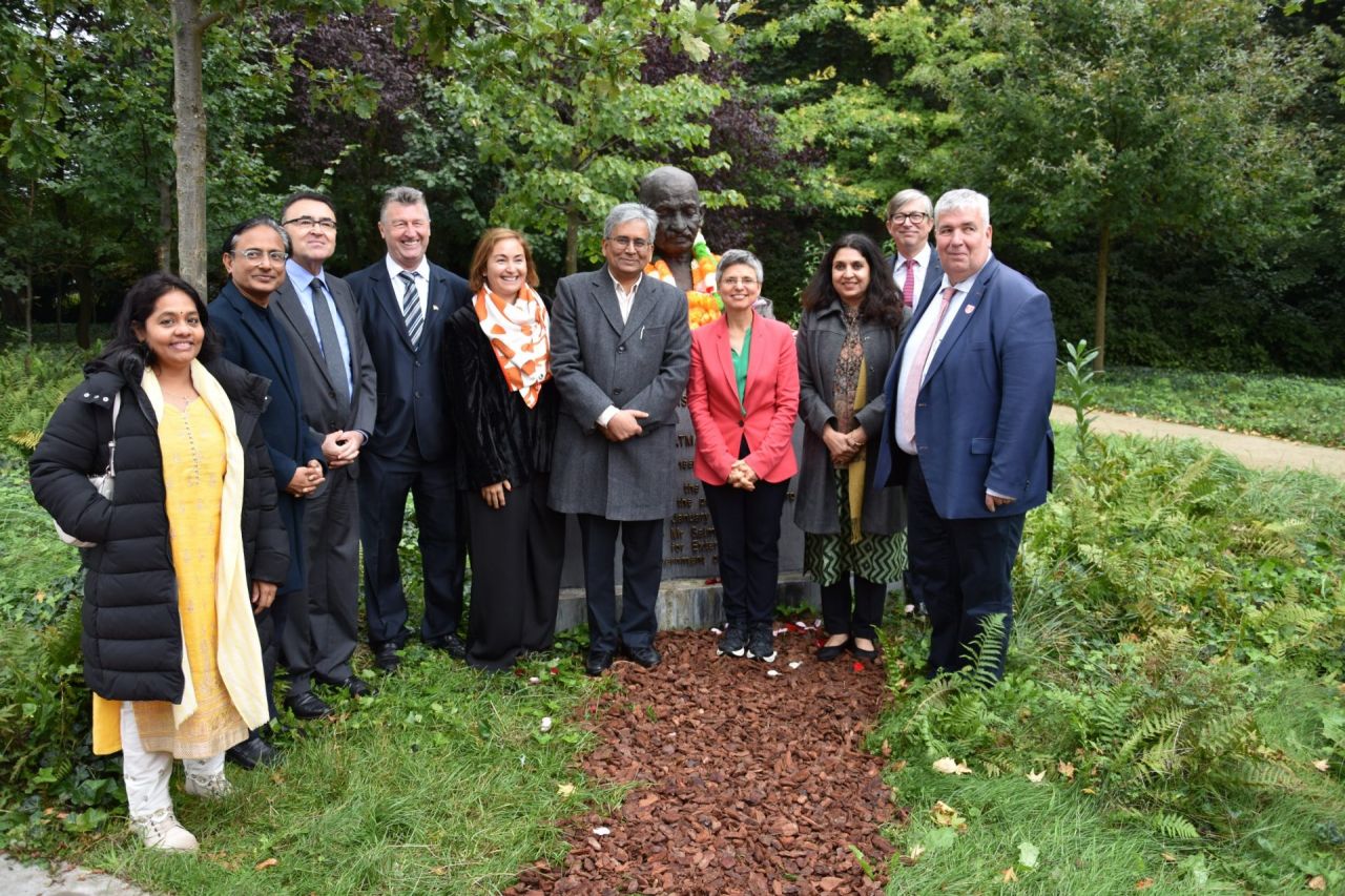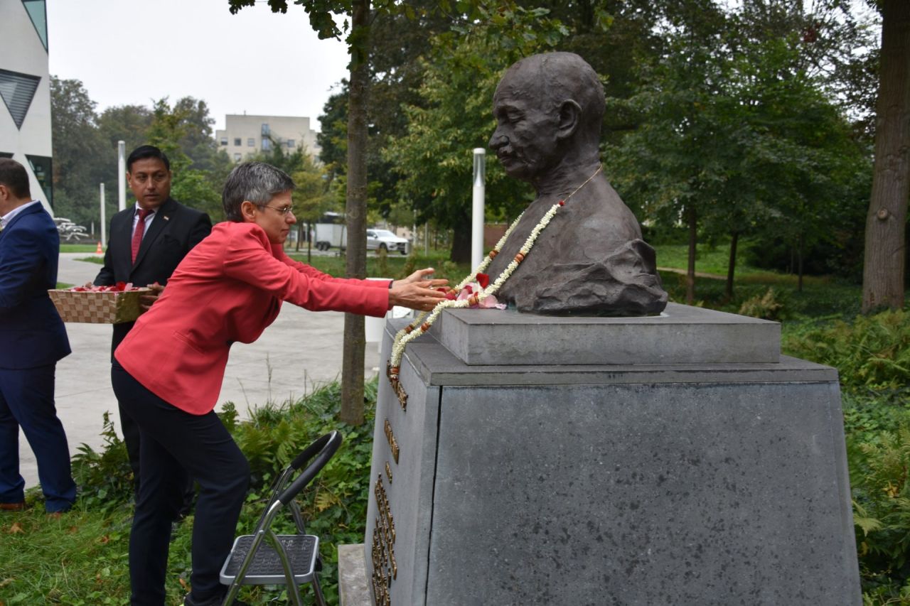 Ook dit jaar brachten ambassadeur Saurabh Kumar, gouverneur Cathy Berx, consul-generaal Dirk Dielen en tal van prominenten en vertegenwoordigers van de Indische gemeenschap opnieuw hulde aan Gandhi.