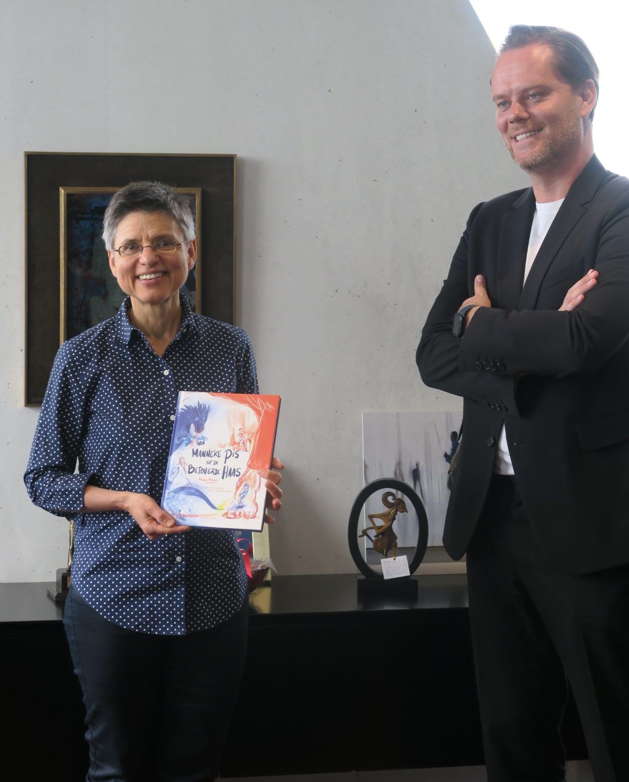 Gouverneur Cathy Berx ontvangt eerste exemplaar van 'Manneke Pis tot Betoverde Haas' van Tanguy Ottomer