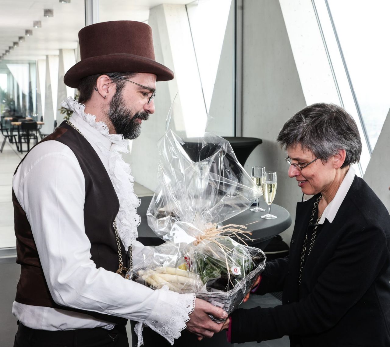 Gouverneur Cathy Berx, gedeputeerden Luk Lemmens, Kathleen Helsen, Jan De Haes, Mireille Colson en provinciegriffier Maarten Puls waren aanwezig bij deze plechtige ontvangst. Er was ook een vertegenwoordiging van de gemeente Puurs-Sint-Amands aanwezig, de bakermat van de witte asperge: ere-schepen Harry Beuckelaers, schepen van evenementen Hilde Van der Poorten en Pieter Van Keymeulen, directeur van de afdeling Beleven.