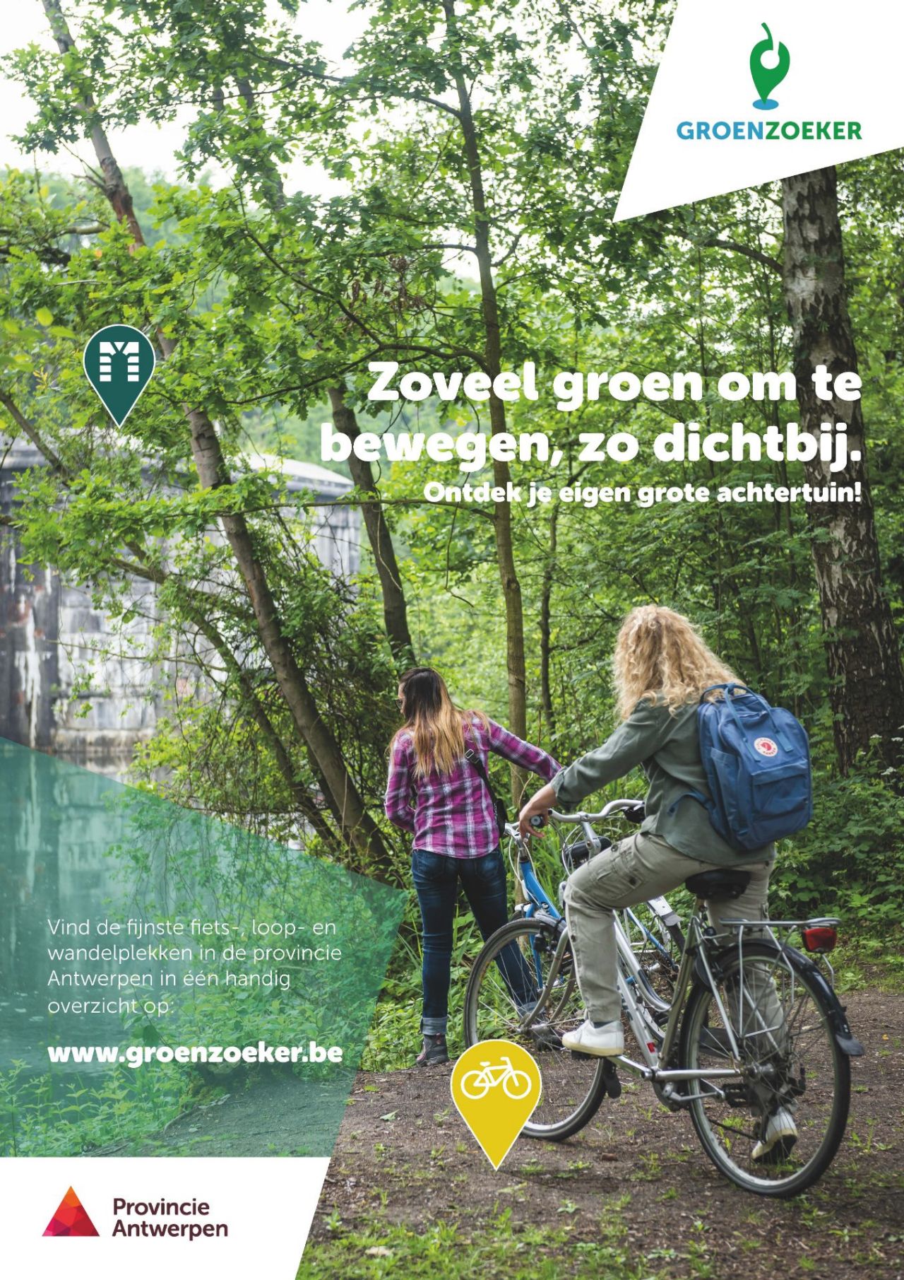 De provincie Antwerpen stelt daarom de GroenZoeker voor. Deze vernieuwde website is dé referentie voor iedereen die op zoek is naar kleinschalige natuur op wandel- of fietsafstand van huis. Je vindt er alle parkjes, speelplekken, bossen, picknicktafels, waterplekjes en domeinen terug die in het groen gelegen zijn, in een kleurrijk en gebruiksvriendelijk jasje