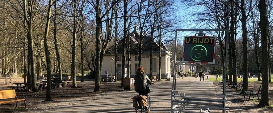 “Daarnaast staat er op de Parkweg een snelheidsmeter”, voegt de directeur er aan toe: “Die laat een groene smiley zien als je met aangepaste snelheid rijdt, een rode als je te snel rijdt. Ook zullen onze domeinwachters tussen 7 en 13 maart parkbezoekers aanspreken om meer rekening te houden met de andere parkgebruikers en hoffelijke fietsers bedanken voor hun correct gedrag. Daarna zal de politie regelmatig controles uitvoeren en handhaven om er op toe te zien dat iedereen zich hoffelijk gedraagt.”