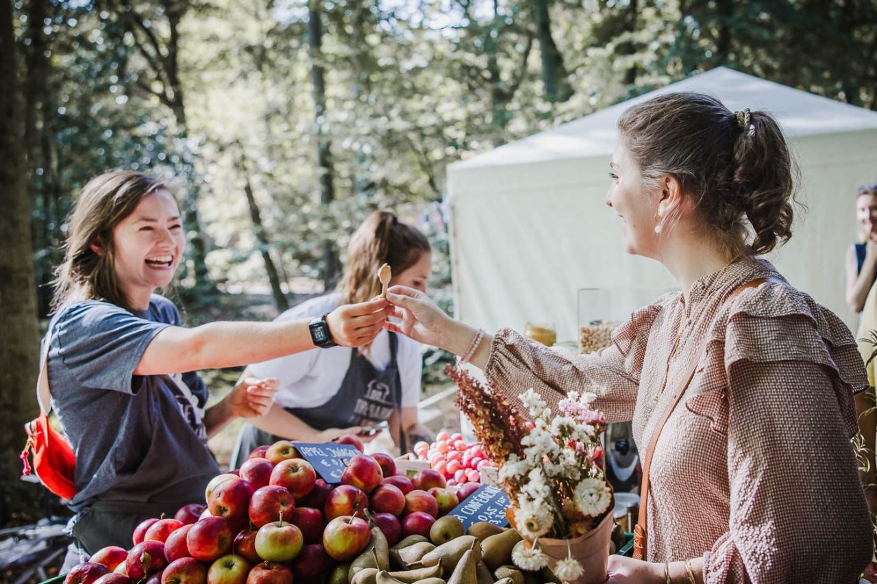 Emilie is een jaarlijks terugkerende bezoekster en kwam vandaag met haar mama en vriend naar de markt: “Ik kom naar Ecodroom voor de ecologische producten. Ik kocht al bloemen, honing, confituur en pikante saus en ga nog op zoek naar pompoenen.” Sarah kwam vandaag voor het eerst naar Ecodroom: “Ik kwam een kijkje nemen op de rommelmarkt maar ontdekte ook al leuke producten op de markt.”