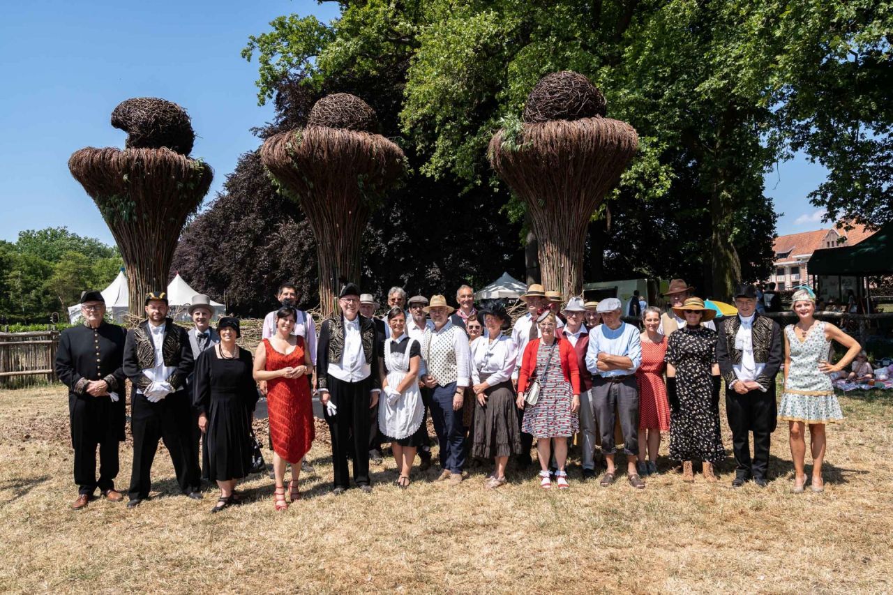 Tijdens de feestpicknick werd het metershoge natuurkunstwerk uit wilgentakken onthuld. ‘Vuurwerk’, maar liefst 9 meter breed en 6 meter hoog, gemaakt door bloembinder en decorateur Dao Peeters, ook vrijwilliger in het Rivierenhof. Dao en een team van collega’s en vrijwilligers maken wilgencreaties die je kan bewonderen in het park. Voor de honderdste verjaardag van het Provinciaal Groendomein Rivierenhof ontwierp Dao de wilgencreatie ‘Vuurwerk’.