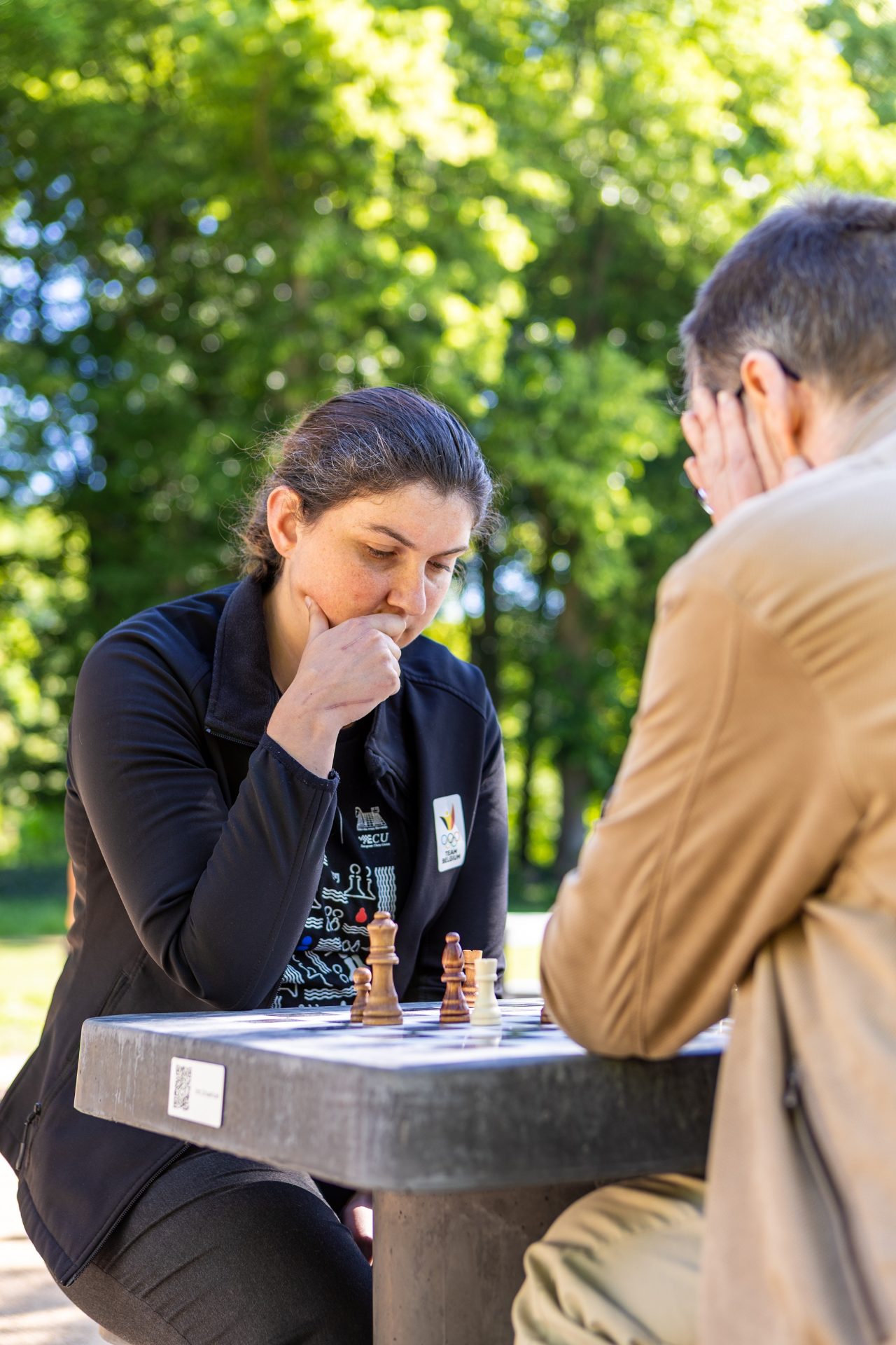Een spelletje schaak is niet alleen ontspannend, maar ook educatief: het bevordert concentratie, logisch en strategisch denken. De laatste jaren zie je ook in Nederland en België meer en meer publieke schaakplaatsen opduiken. Wiebke Barbier, voormalig Belgische kampioene, is blij met dit initiatief: “Het is fijn dat het Rivierenhof ook zo’n plek voorziet. Een publieke schaakruimte verlaagt letterlijk de drempel tot leren en ontmoeten. Je kan gewoon gaan zitten en beginnen spelen. Je ontwikkelt vaardigheden zoals sportiviteit, discipline en je leert vooruit denken, spelplezier inbegrepen.”