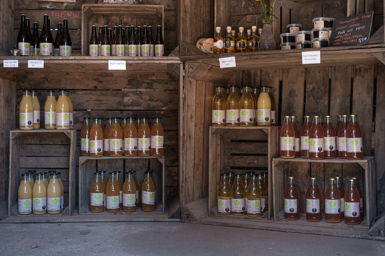 Lokaal geproduceerde appelsappen en samengestelde smaken alsook stropen, siropen. Allemaal afgeleide producten van de appeltjes en de peren uit eigen boomgaard en alles zonder toegevoegde additieven.
