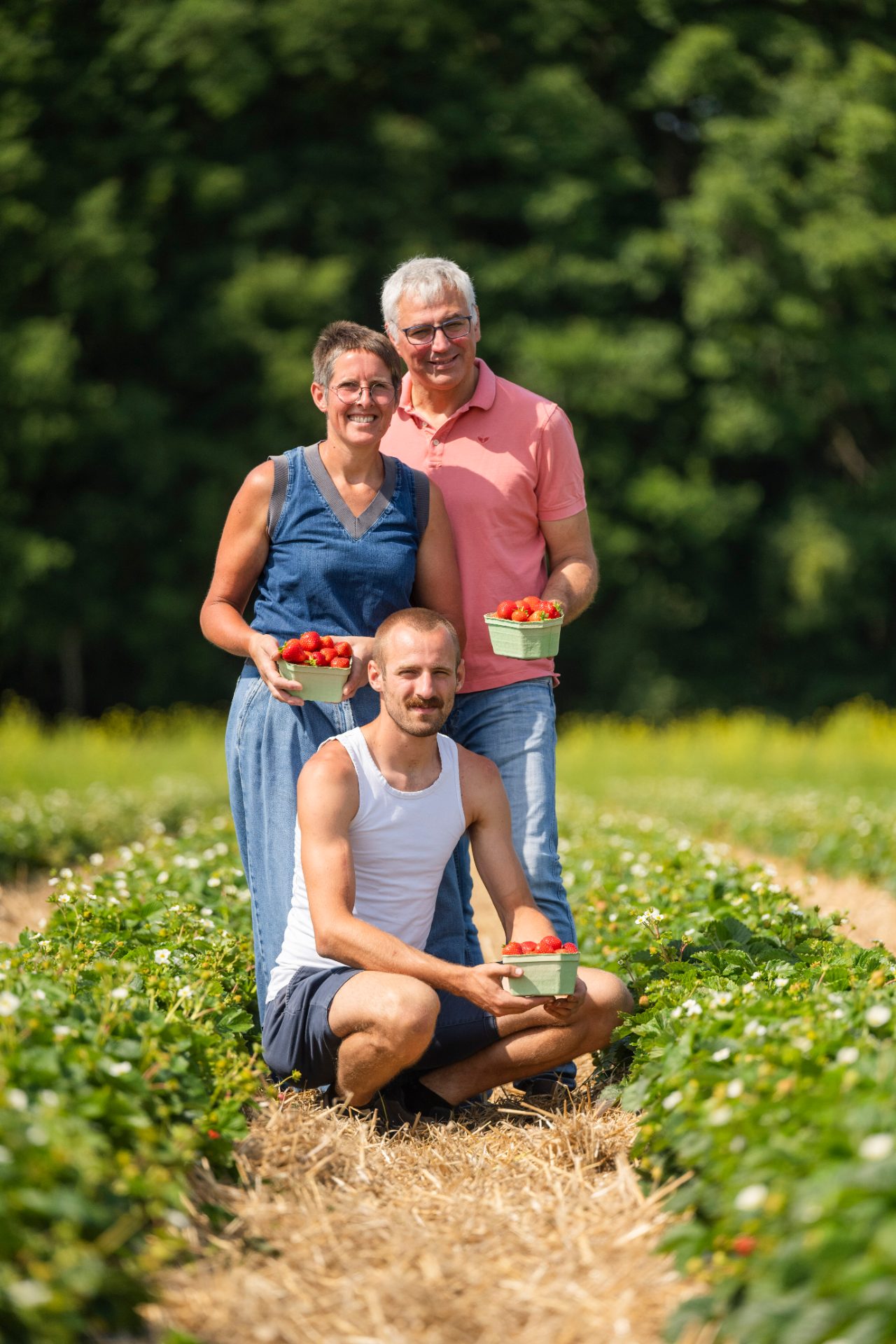 Proeverij en verkoop van onze lokaal in volle grond geteelde aardbeien en meloenen en zelfgemaakte confituren, aardbeisap en aardbeibier.