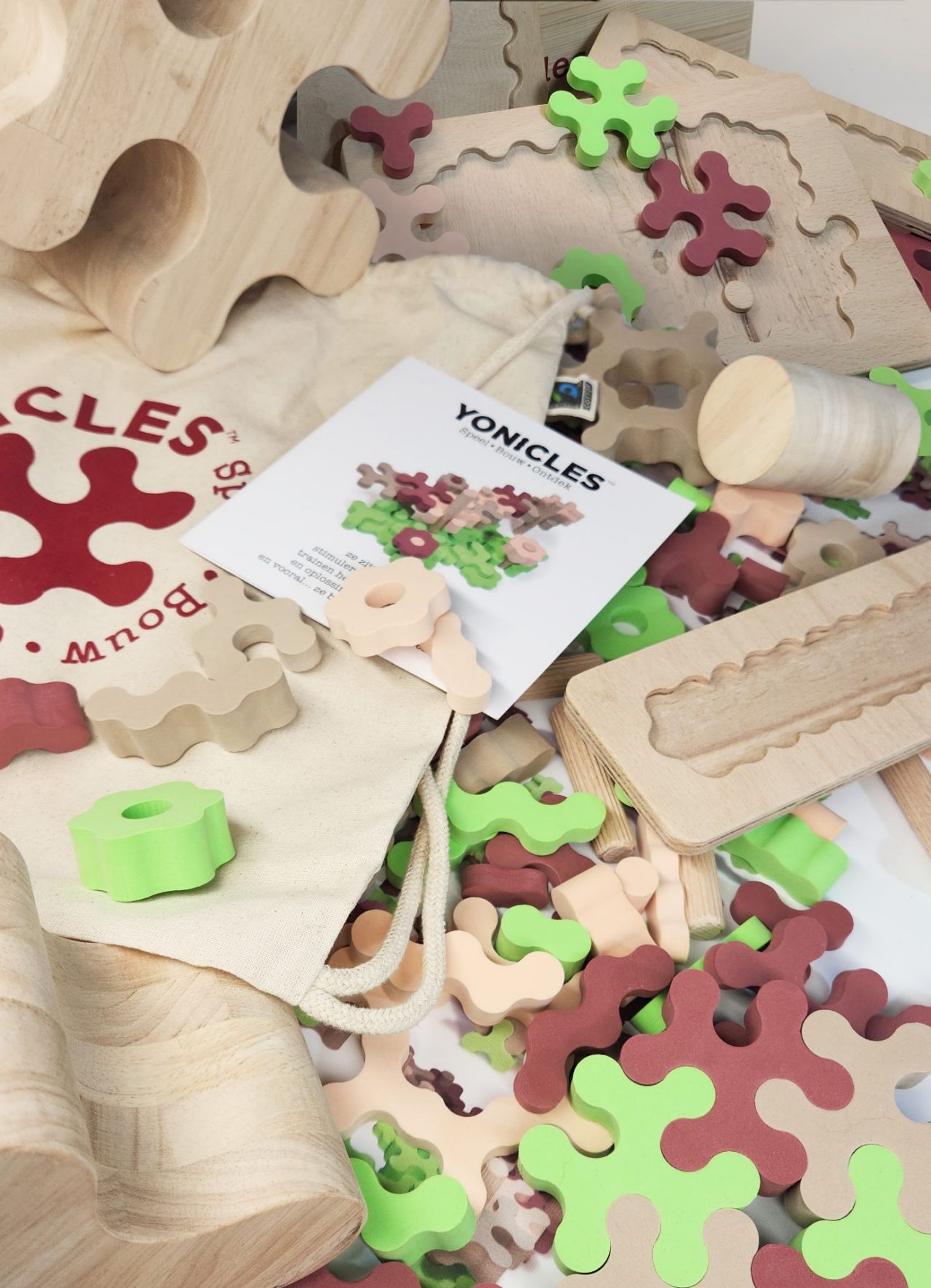 Verkoop van YONICLES, een puzzel- en bouwsysteem voor alle groepen, leeftijden en niveaus. INCLUSIEF dus! Lokaal ontworpen en geproduceerd!