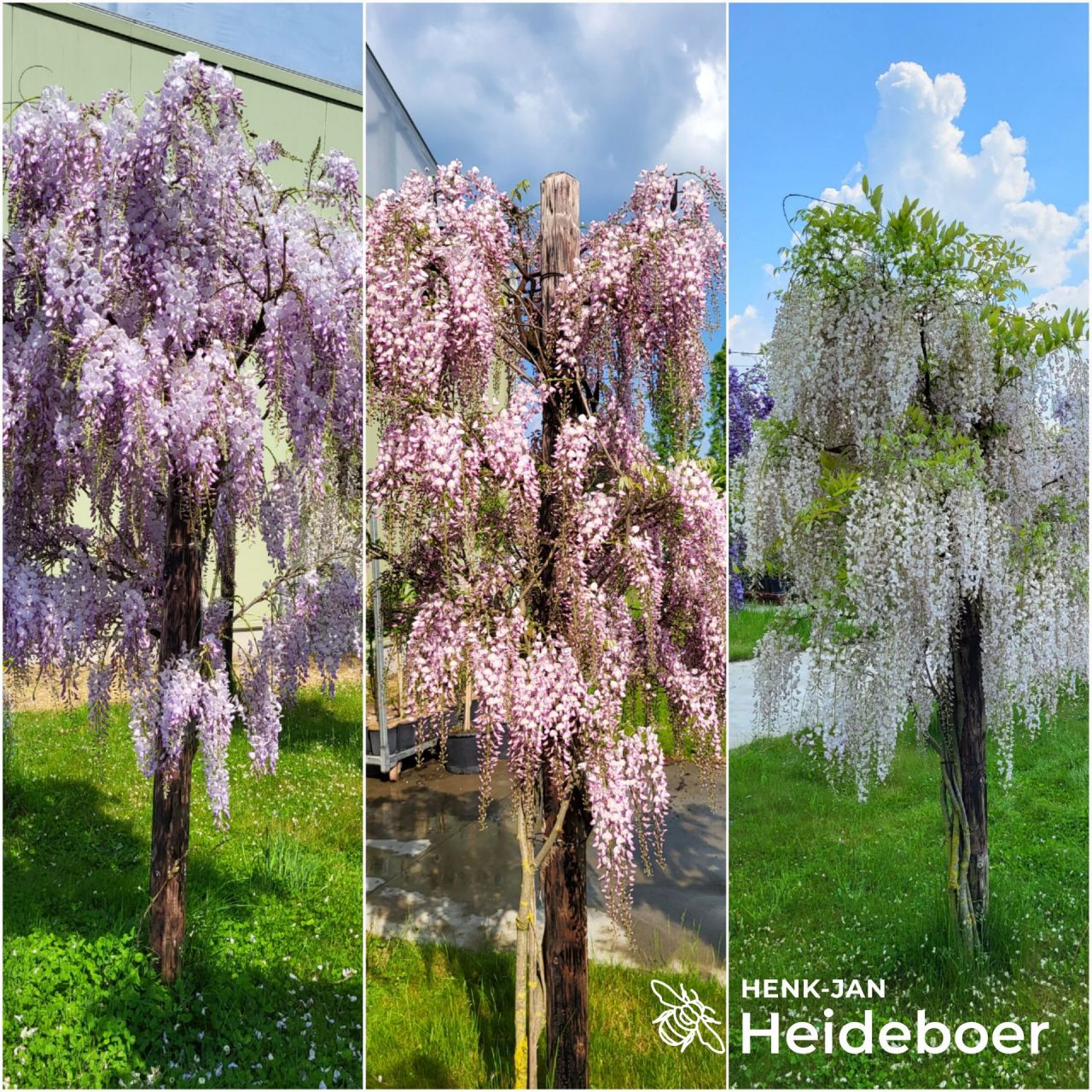 Grote collectie blauwe regen (Wisteria), heideplanten en bijzondere bomen