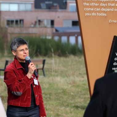 Gouverneur Cathy Berx huldigt mee Herdenkingstuin voor coronaslachtoffer in aan het Geelse ziekenhuis