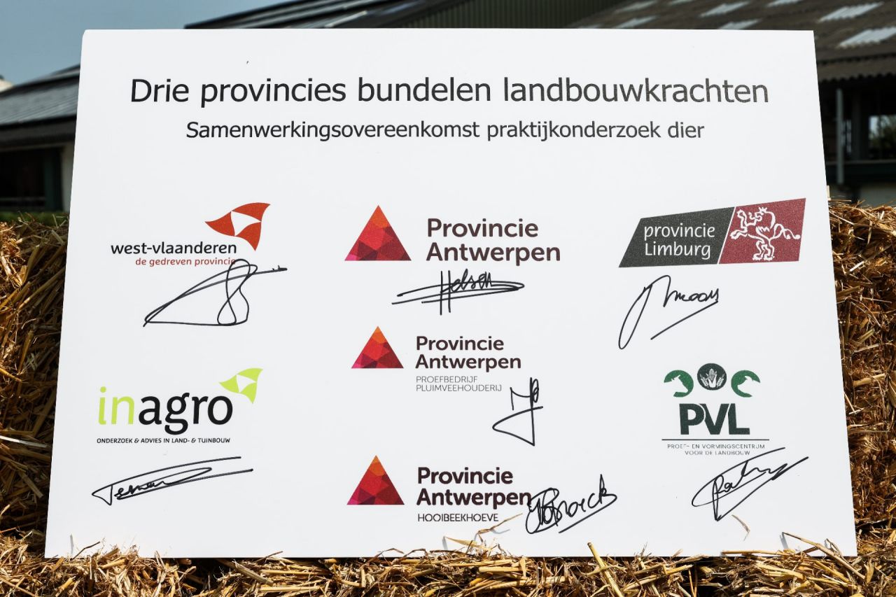 Het provinciale Proefbedrijf Pluimveehouderij, het onderzoekscentrum voor melkveehouderij en voedergewassen Hooibeekhoeve, het Proef- en Vormingscentrum voor de Landbouw (PVL) en Inagro zijn elk apart al jaren actief in praktijkonderzoek en voorlichting in dierlijke productie. Vanaf augustus 2024 slaan ze de handen in elkaar om structureel samen te werken om elkaar én de dierlijke landbouwsector te versterken. De bevoegde gedeputeerden van Limburg, West-Vlaanderen en provincie Antwerpen bekrachtigen deze samenwerking op 19 augustus 2024.