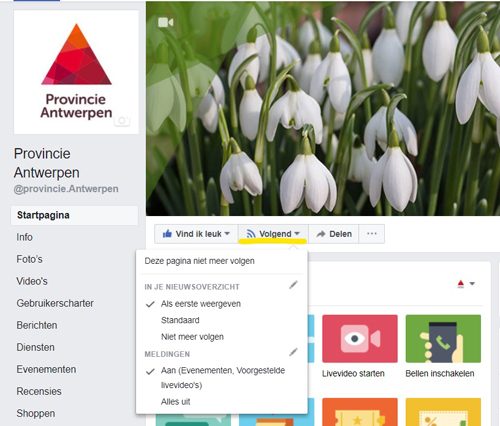 - Ga naar de Facebookpagina van de provincie Antwerpen.