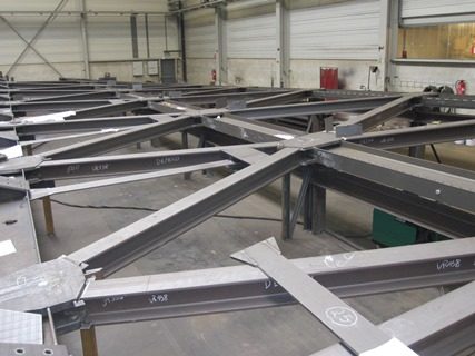De pdf hieronder toont met tekeningen hoe de stalen constructie stap voor stap werd opgebouwd.