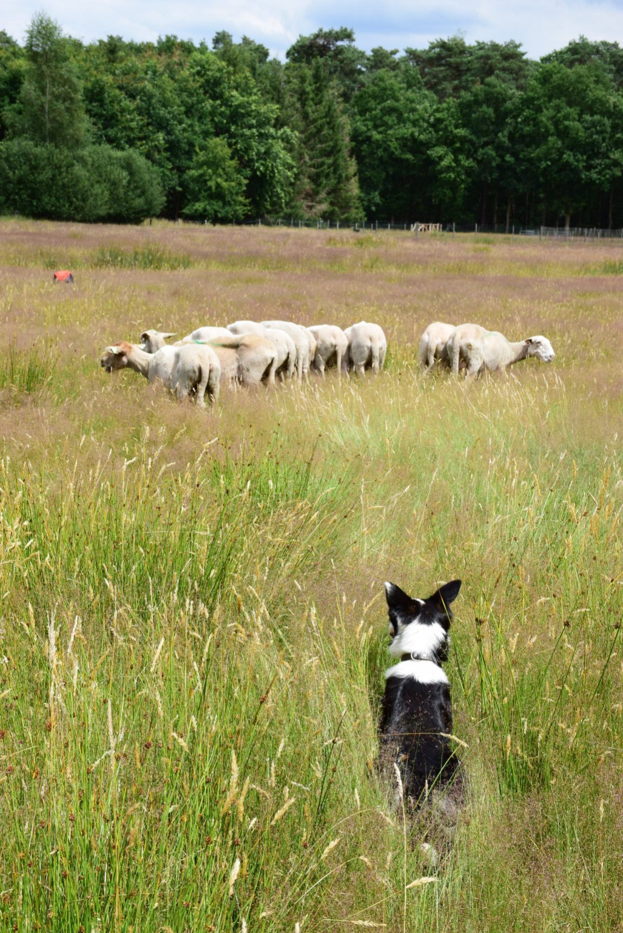 Dan gaan we samen de weide in, zie je hoe een herdershond schapen drijft en leer je ook zelf schapen drijven.