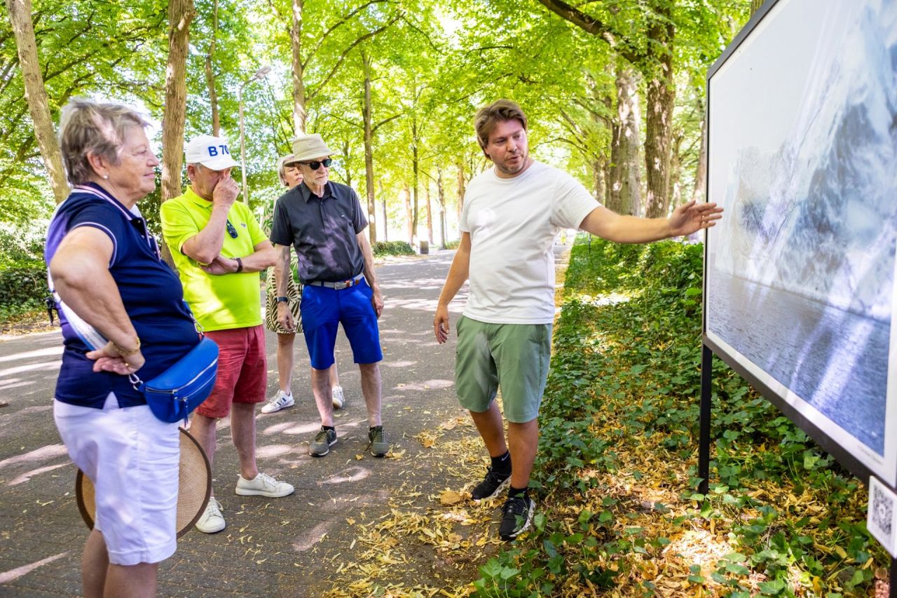 Clauwers trok met geïnteresseerden langs de Parkdreef, waar de tentoonstelling opgesteld staat tussen het Sprookjeshuis en de minigolf. Tijdens verschillende tussenstops gaf Clauwers toelichting bij geselecteerde werken en deelde hij verhalen over zijn expedities naar de poolgebieden en oceanen. De rondleiding bood de aanwezigen een unieke blik achter de schermen van zijn werk en missie.