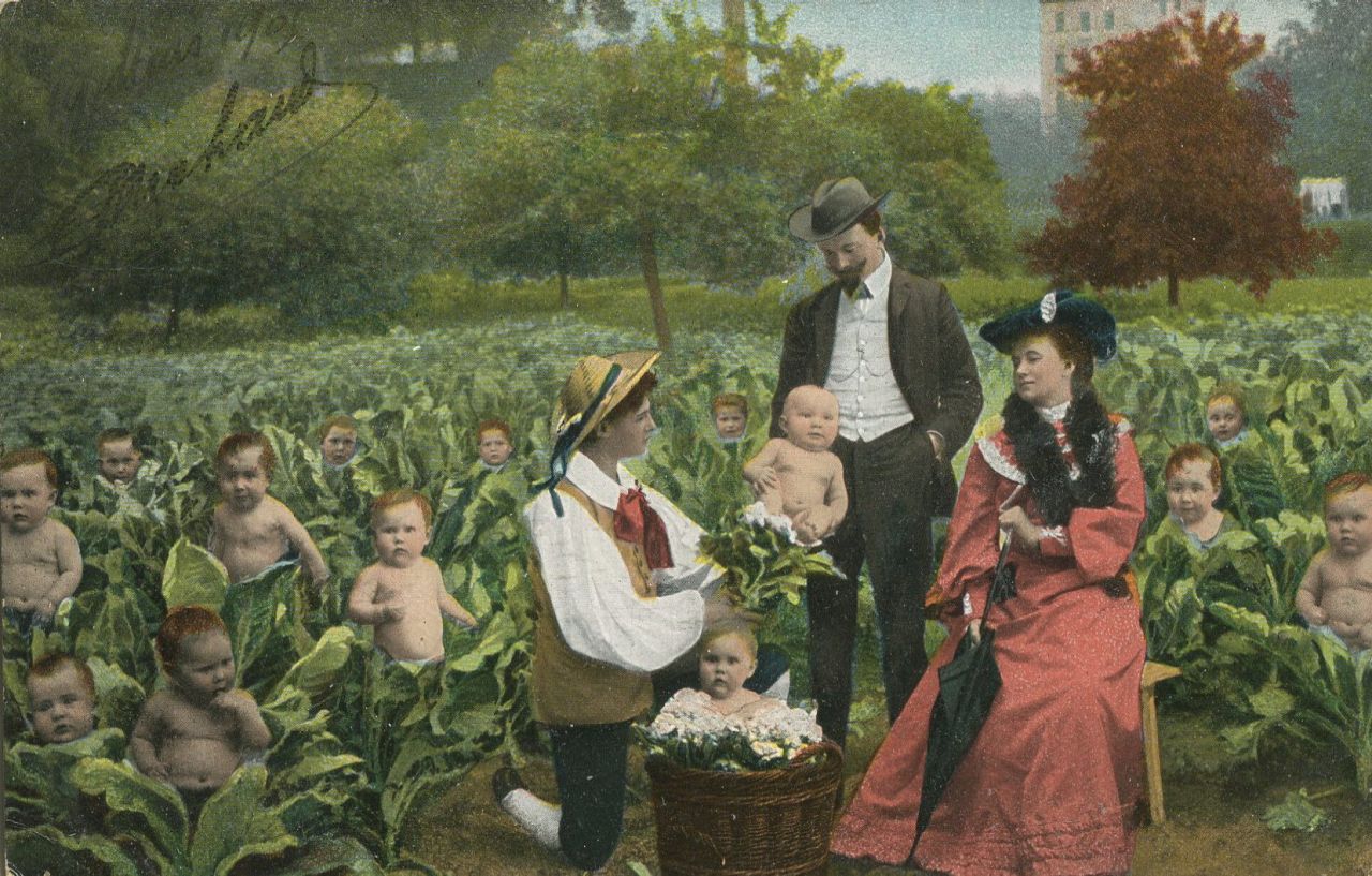 Wanneer het over voortplanting gaat, worden er al eens bloemetjes en bijtjes bijgehaald. Maar wist je dat er ook heel wat andere plantenreferenties in volksverhalen over geboorte te vinden zijn? Die staan inspirerend gebundeld in het boek 'Verrukkelijke Baby’s' van De Nederlandse kunstenaar Tammo Schuringa. Hij schreef niet alleen de verhalen, hij toont in het boek ook zijn prachtige collectie oude ansichtkaarten met pasgeboren kinderen. Uit zijn collectie vind je op de Buitenkamer nabij het kolentheater een selectie postkaarten met baby’s die in kolenvelden of bomen groeien, aan rozenstruiken hangen of in ooievaarsnesten zitten.